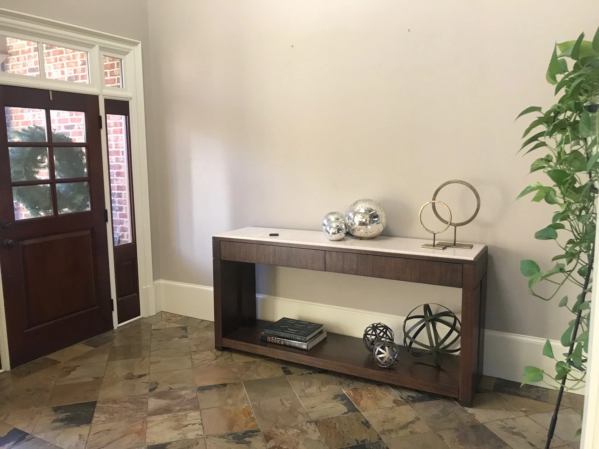Getting creative with existing pieces of furniture and adding new elements can completely transform a room or entryway you’ve grown tired of. It can be so fun to mix the traditional foundation with some modern prints and trends.